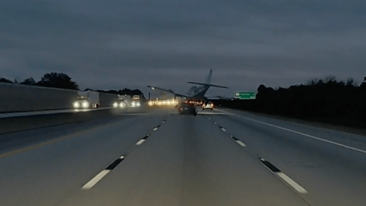 Ein Kleinflugzeug im US-Bundesstaat Florida hat Probleme mit dem Motor und muss auf einer Straรe notlanden. Genau in dem Moment befindet sich dort ein Auto.